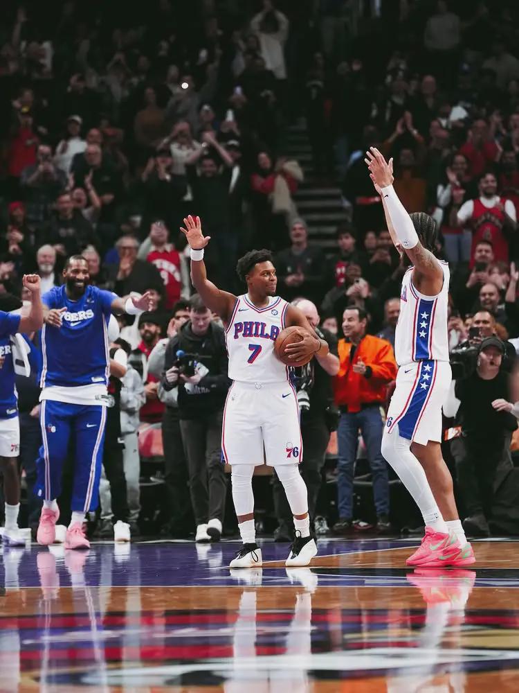 北京时间1月13日,NBA常规赛:76人客场115-102力克猛龙。此役过后,猛龙24胜17负东部第四,76人22胜16负东部第五,两队仅差0.5个胜场。76人老将凯尔-洛瑞在最后1分57秒替补登场,猛龙主场近2万名球迷起立鼓掌。
